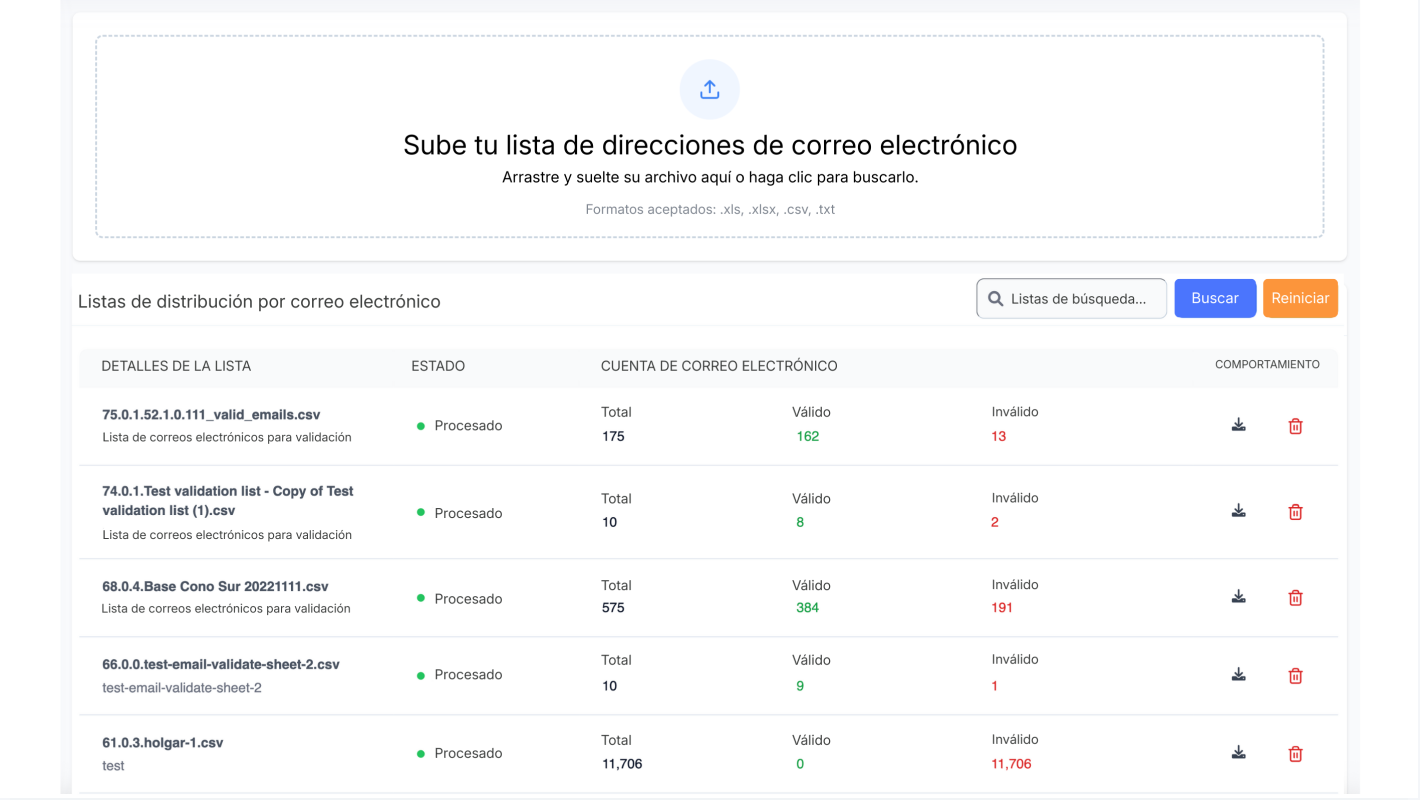 Verifica con precisión listas de correos electrónicos de forma masiva para todas tus listas de distribución y campañas de correo electrónico.