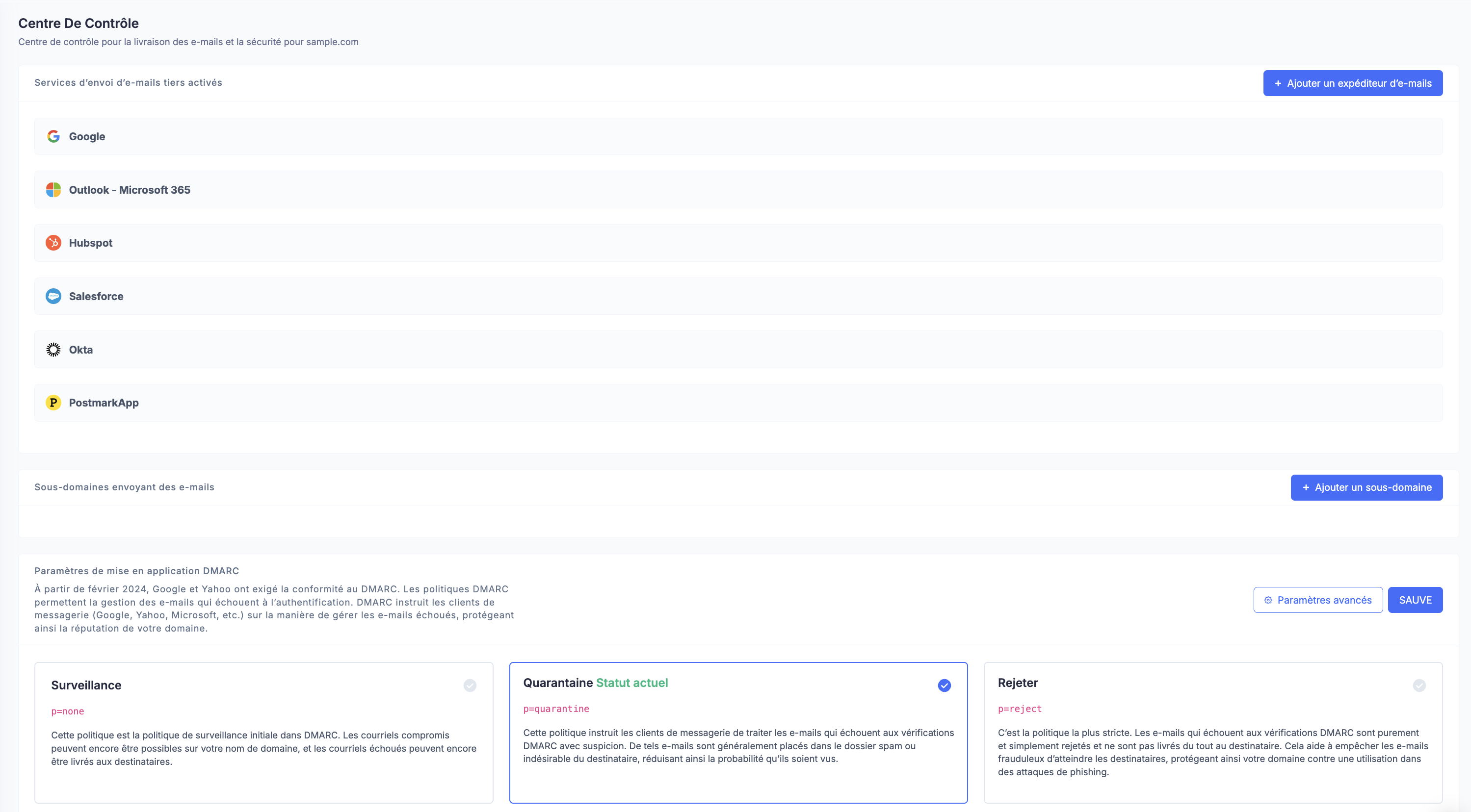 Configurez les paramètres DMARC et définissez les enregistrements DNS nécessaires en toute simplicité.